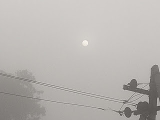 फोटो कैप्शन 05 : सूर्य बादलों एवं धुंध के बीच आंख मिचौनी करता हुआ।
